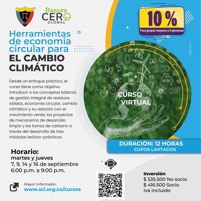 Horario 7, 9, 14 y 16 de septiembre Martes y jueves 6:00 p.m. a 9:00 p.m Inversión $ 535.500 No socio$ 416.500 SocioIva incluido Descargar InscripcionesPresentación general La problemática de la gestión de residuos sólidos, variabilidad climática y el crecimiento económico lento y desigual, que en otros países ha sido afrontado desde varios años […]